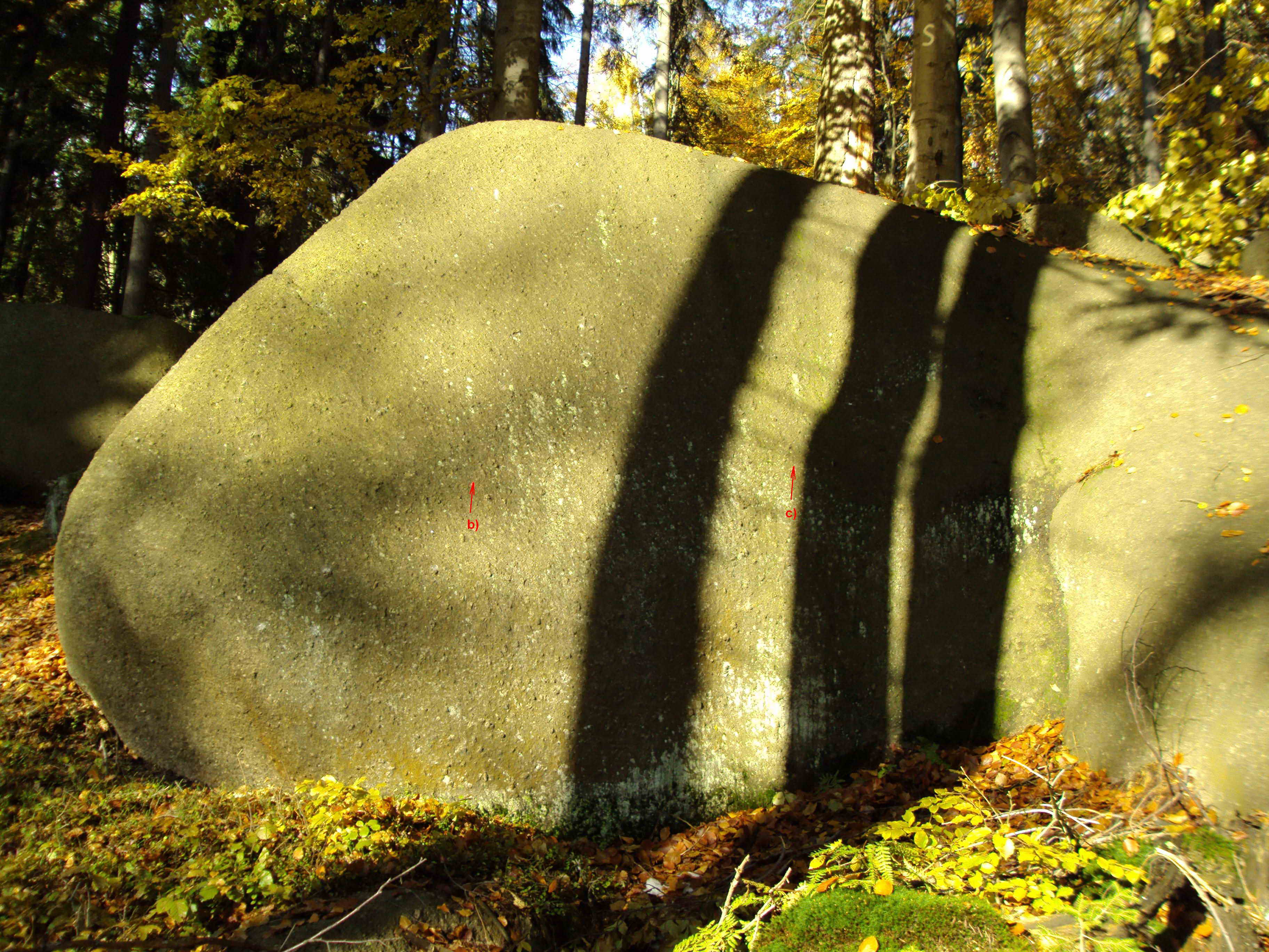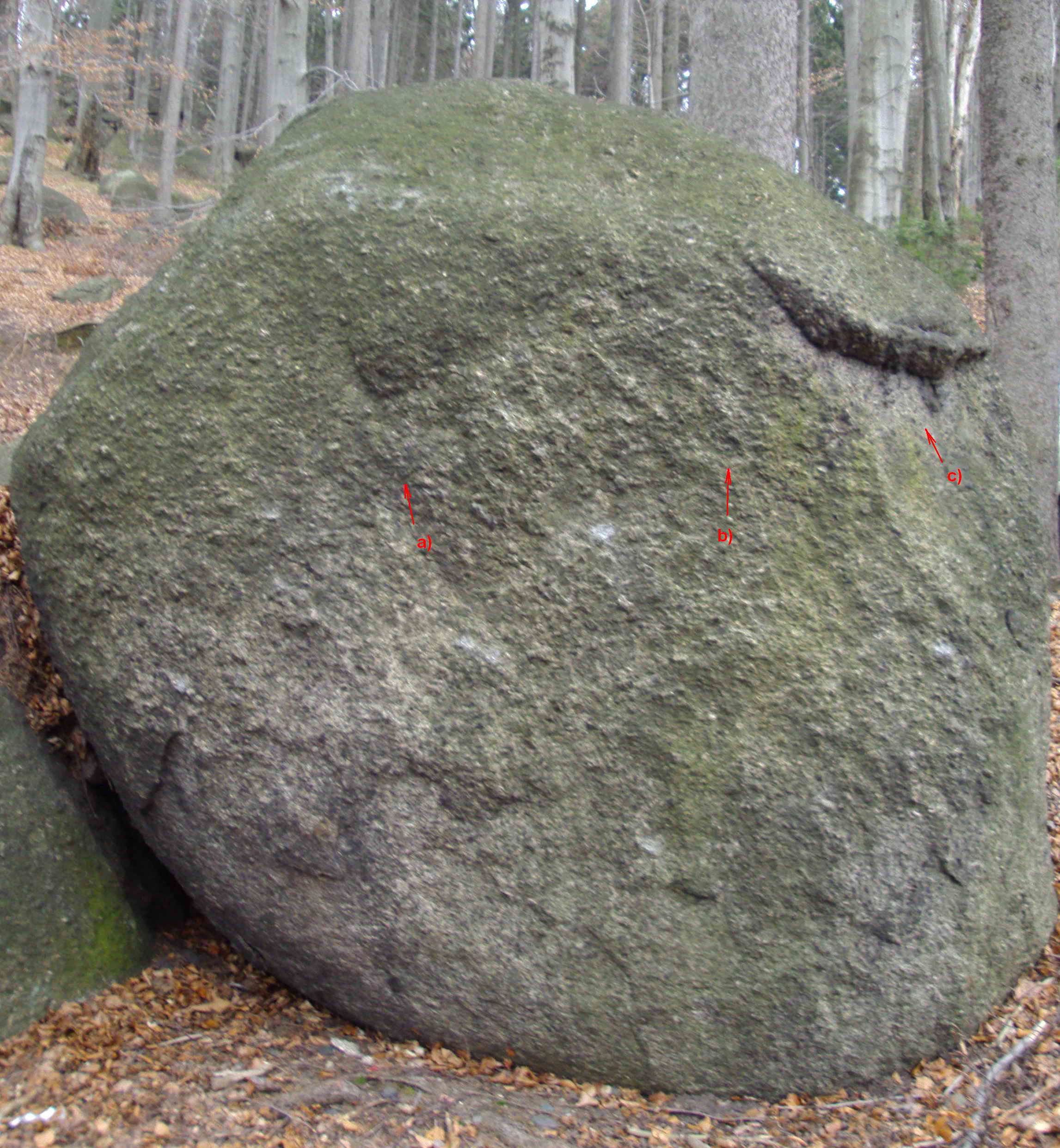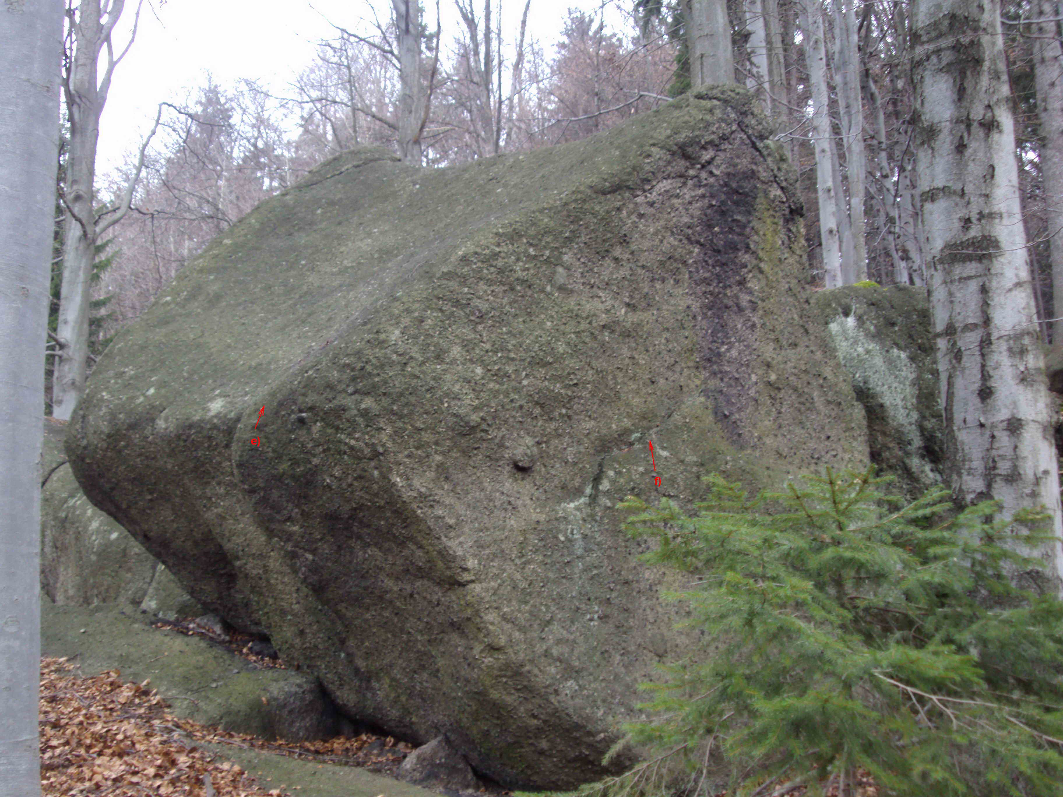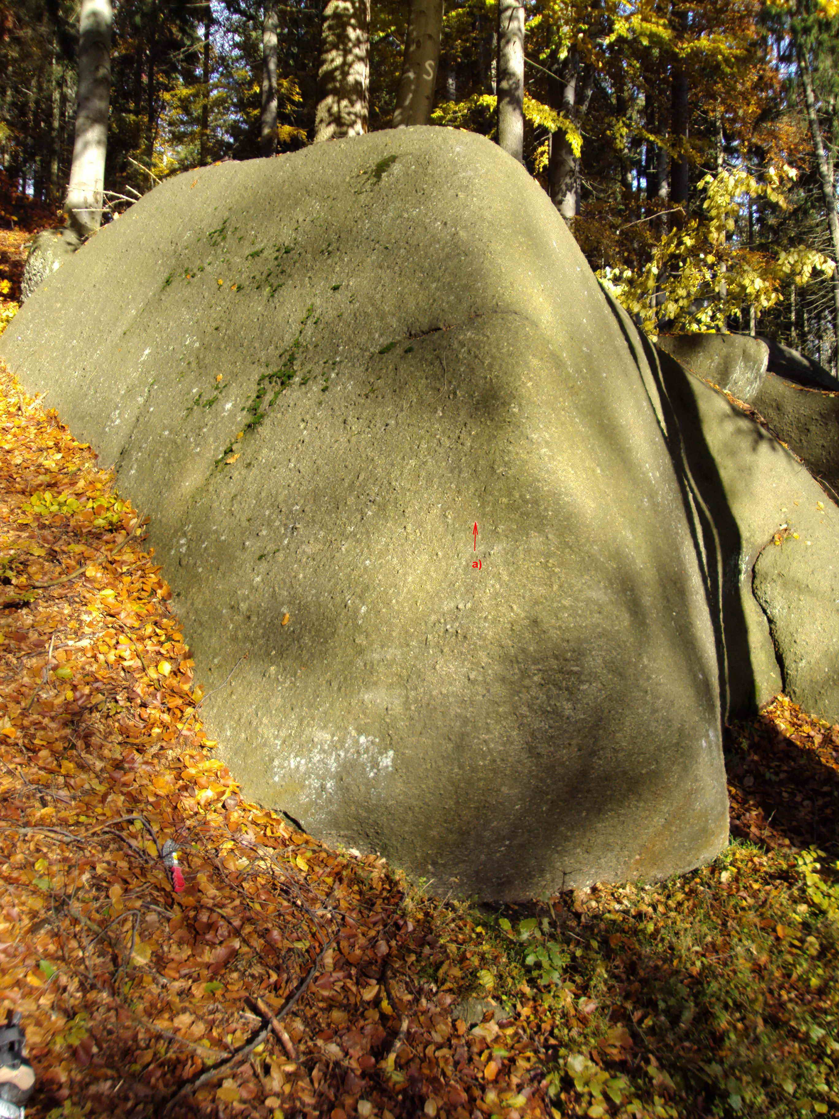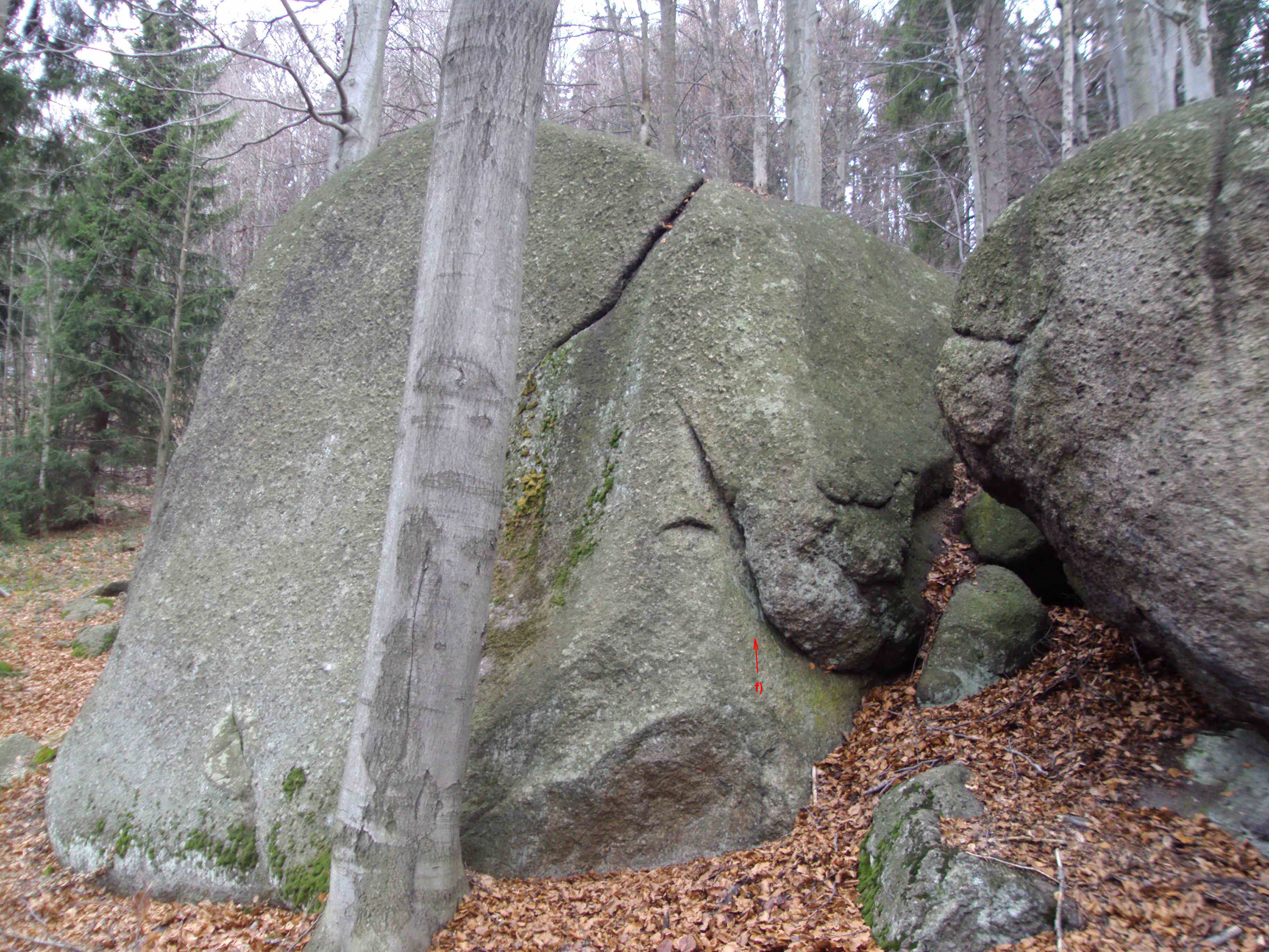 M - skála obrostlá mechem a lišejníkem.